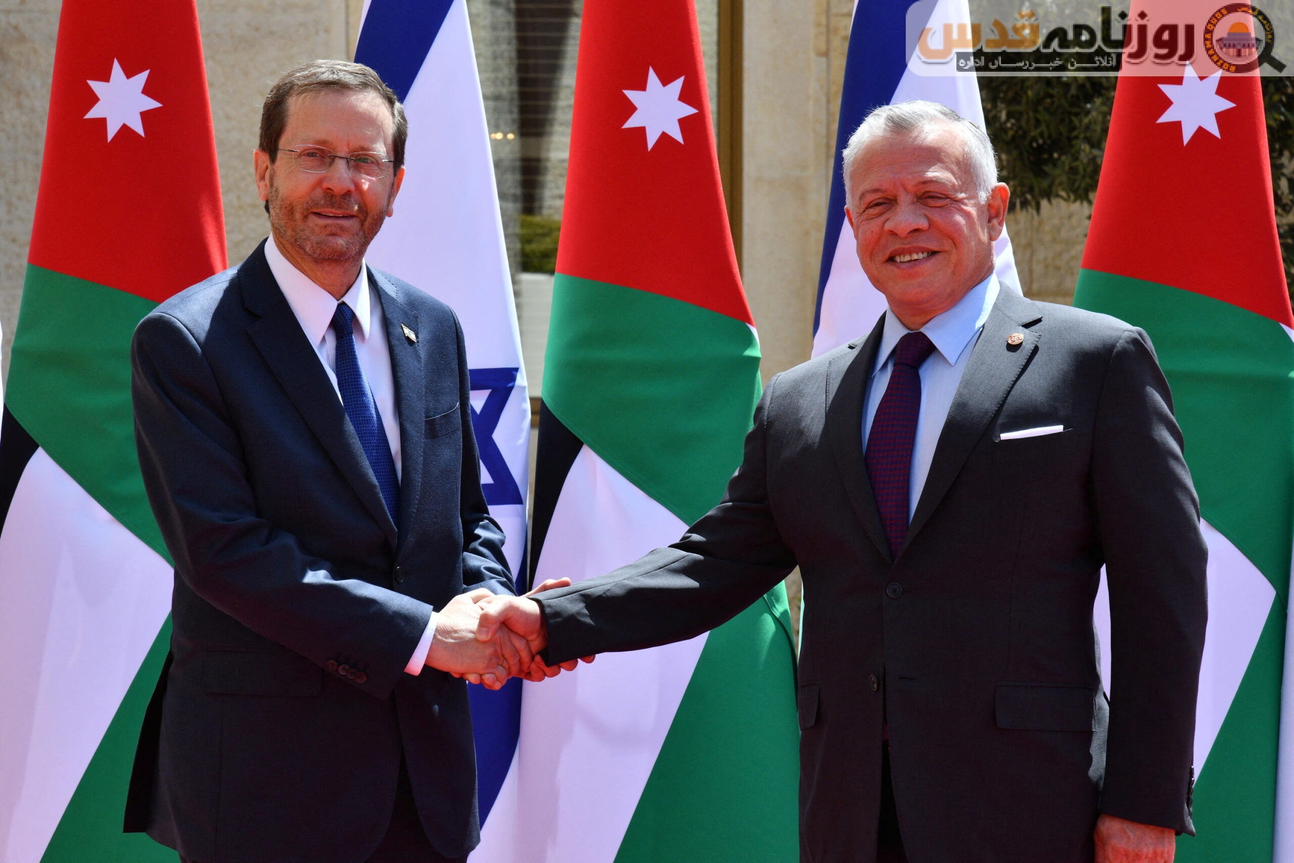 Israeli President Isaac Herzog shakes hands with Jordan's King Abdullah II during a diplomatic visit to Amman, Jordan March 30, 2022. Haim Zach/Government Press Office (GPO)/via REUTERS