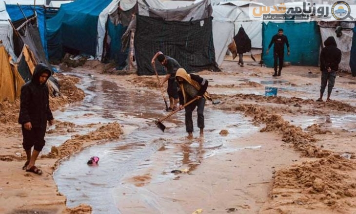 غزہ کے بے گھر شہری گذشتہ کئی دنوں سے خیموں میں نہایت سخت حالات سے گزر رہے ہیں جہاں موسلا دھار بارشیں مسلسل جاری ہیں اور سردی کی شدت بے پناہ بڑھ چکی ہے۔