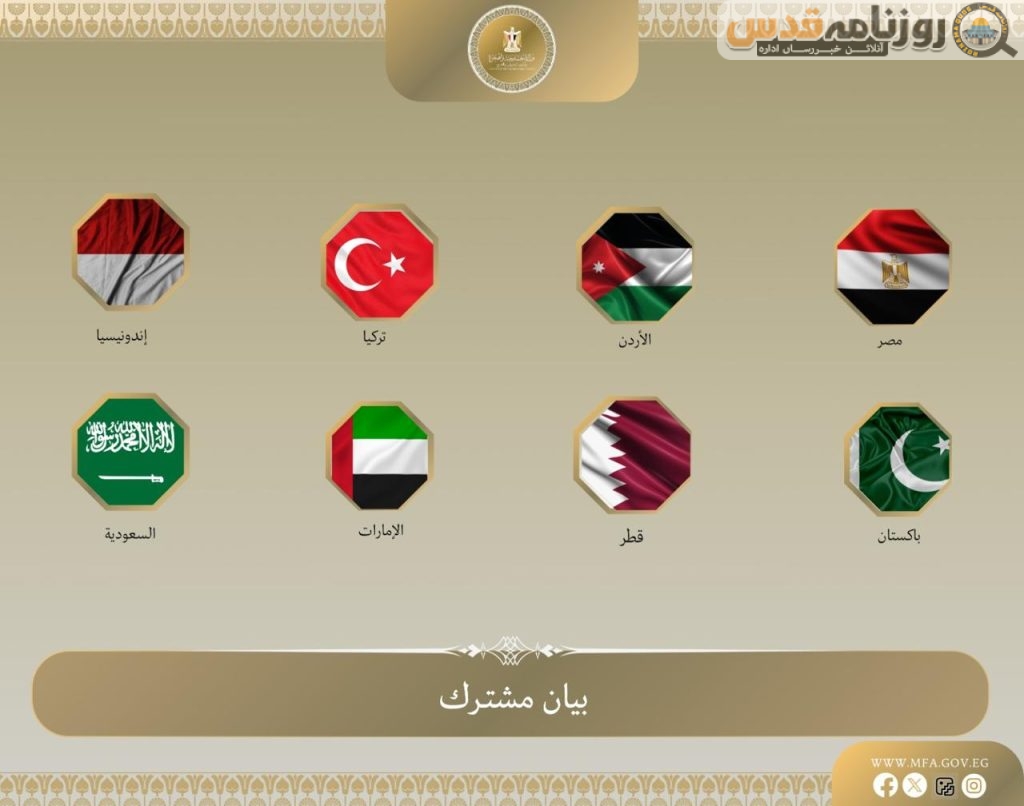 یہ مطالبہ ایک مشترکہ بیان میں سامنے آیا جس پر جمہوریہ مصر ، مملکتِ اردن ، متحدہ عرب امارات ،جمہوریہ انڈونیشیا ،اسلامی جمہوریہ پاکستان ،جمہوریہ ترکیہ مملکتِ سعودی عرب اور ریاست قطر کے وزرائے خارجہ نے دستخط کیے۔