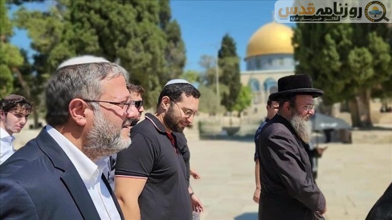 مقبوضہ مغربی کنارہ – (روزنامہ قدس ـ آنلائن خبر رساں ادارہ) قابض حکومت کے نام نہاد وزیر برائے قومی سکیورٹی ایتمار بن گویر نے پیر کی شام غاصب اسرائیلی افواج کی سنگین حفاطت میں باب المغاربہ کے راستے مسجد اقصیٰ کے مقدس صحنوں پر دھاوا بول دیا۔