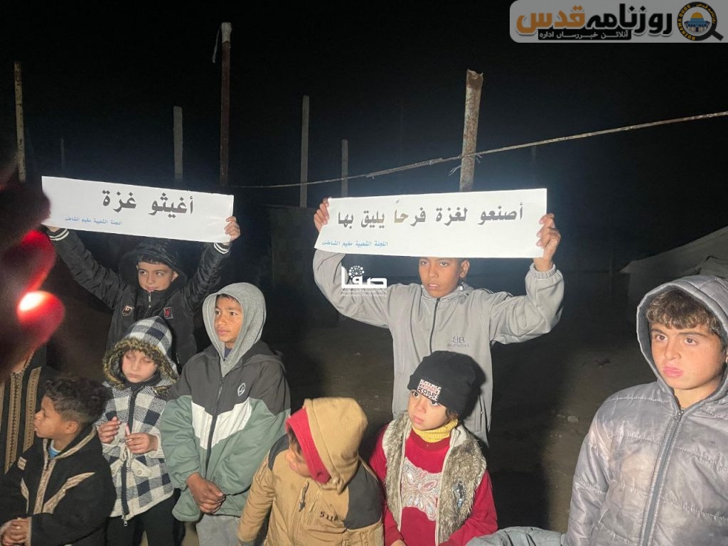 غزہ ۔ (روزنامہ قدس ـ آنلائن خبر رساں ادارہ) غزہ کے الشاطی پناہ گزین کیمپ میں نئے سال کی رات بچوں کے ننھے ہاتھوں میں اٹھنے والی تختیاں محض عارضی نعرے نہیں تھیں بلکہ غزہ کے بچوں کی جانب سے دنیا کے ضمیر کے نام ایک براہ راست انسانی پیغام تھا کہ وہ بیدار ہو اور حرکت میں آئے۔ جب انہوں نے لکھا غزہ زندگی کا حق دار ہے تو وہ اپنے سب سے بنیادی حق، یعنی سکیورٹی اور بقا کا مطالبہ کر رہے تھے، اور جب انہوں نے کہا غزہ کے لیے ایسا فرح تخلیق کرو جو اسے زیب دے تو وہ اس حق کے لیے دہائی دے رہے تھے کہ انہیں بھی ایک معمول کا، محفوظ اور بے خوف بچپن نصیب ہو جو خیموں سے جڑی ہو اور نہ ہی دہشت سے آشنا ہو۔