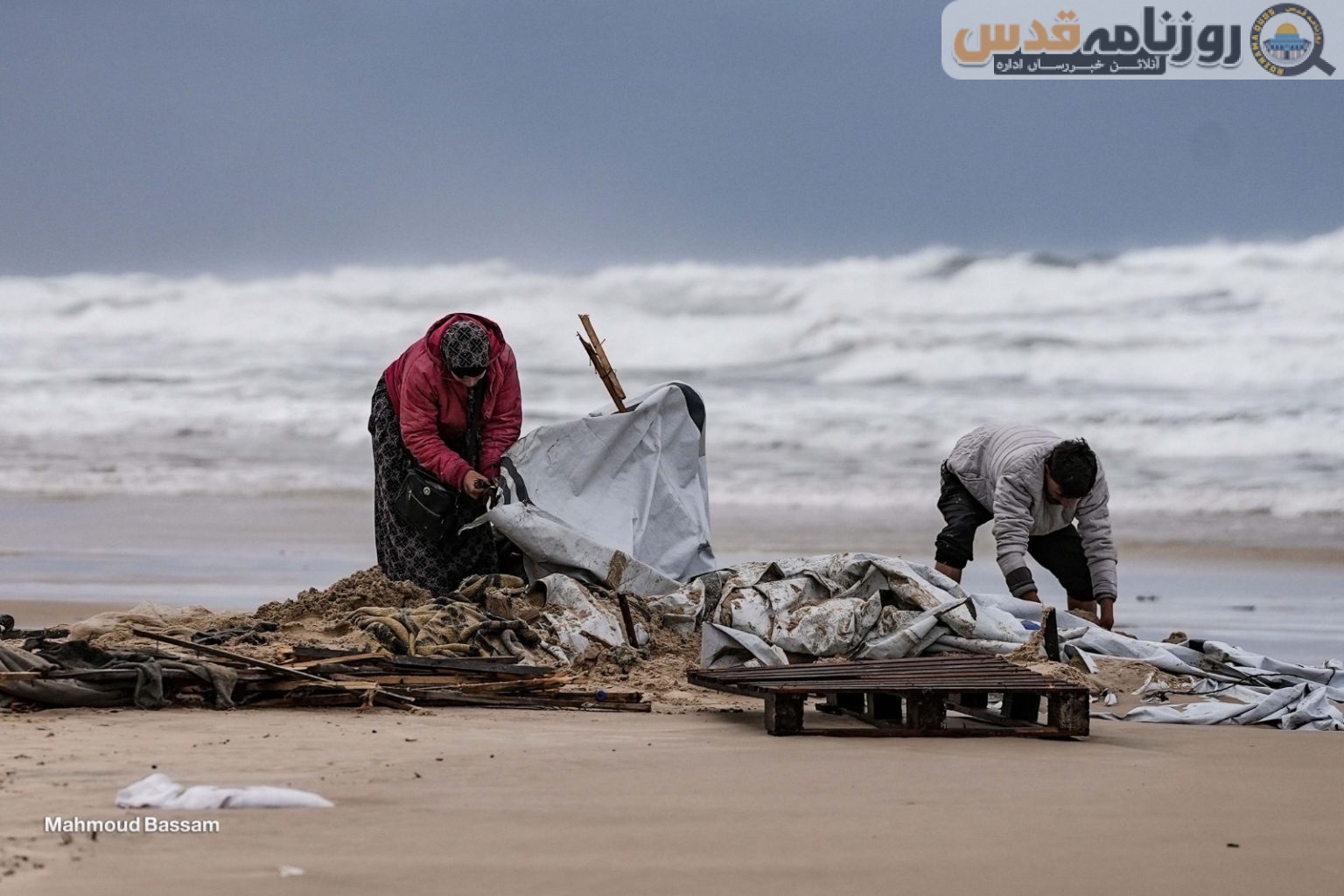 گذشتہ دسمبر کے اختتام پر غزہ کی پٹی میں آنے والے موسمی دباؤ کے دوران جنوبی غزہ میں خان یونس شہر کے ساحل پر قائم بے گھر فلسطینیوں کے سیکڑوں خیمے سمندری لہروں کے باعث زیر آب آ گئے تھے۔