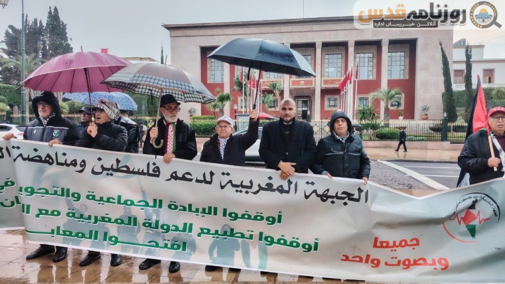 مراکش کے دارالحکومت رباط میں سیکڑوں مراکشی شہریوں نے فلسطینی عوام سے اظہار یکجہتی کرتے ہوئے احتجاجی مظاہرہ کیا اور قابض اسرائیل کے ساتھ جاری نارملائزیشن کو فوری طور پر ختم کرنے کا مطالبہ کیا۔