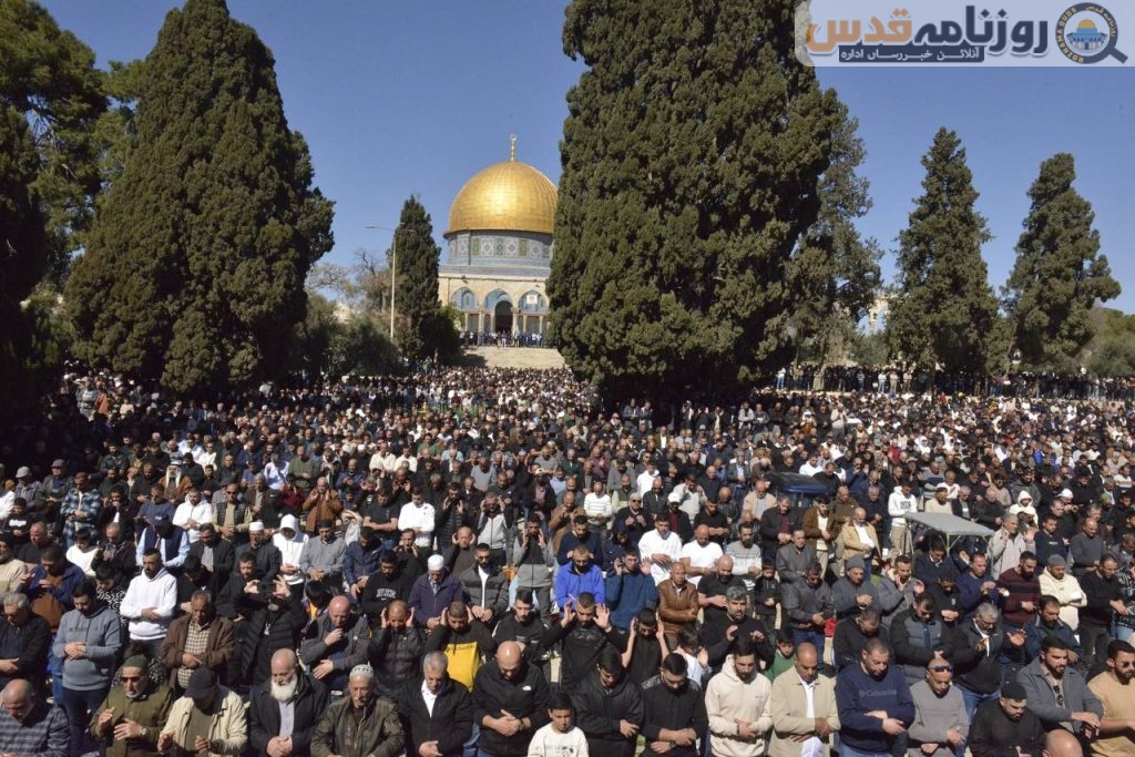 مقبوضہ بیت المقدس – (روزنامہ قدس ـ آنلائن خبر رساں ادارہ) رمضان المبارک کے دوسرے جمعہ کے موقع پر تقریباً 80 ہزار فلسطینیوں نے مسجد اقصیٰ اور اس کے صحنوں میں نمازِ جمعہ ادا کی۔ یہ حاضری قابض اسرائیل کے ان سخت گیر اقدامات کے باوجود دیکھنے میں آئی جن کا مقصد مغربی کنارہ سے آنے والے نمازیوں کی تعداد کو کم کرنا اور مقدس شہر تک رسائی کو محدود کرنا تھا۔