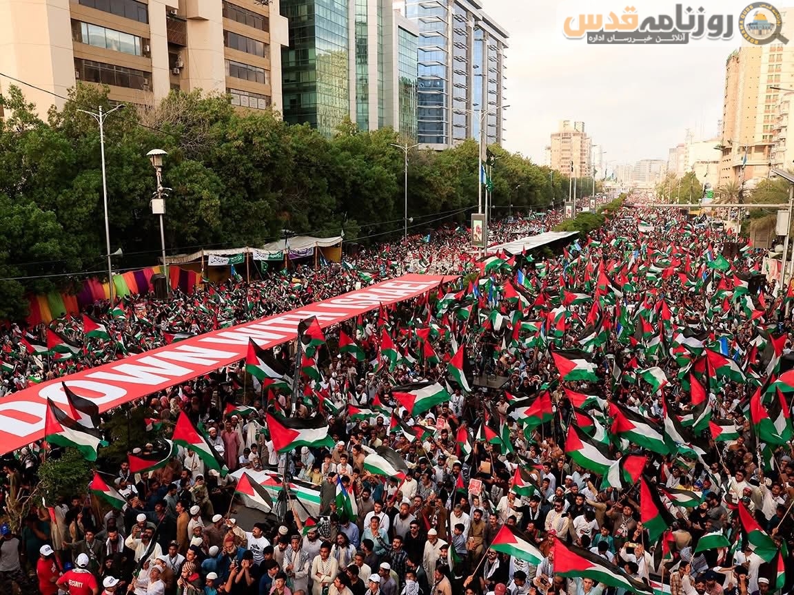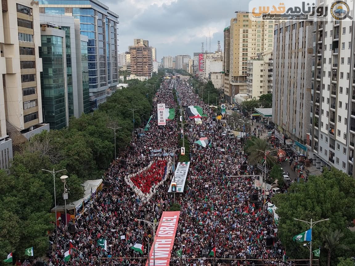 (روزنامہ قدس ـ آنلائن خبر رساں ادارہ) کراچی میں شاہراہ فیصل پر جماعت اسلامی کے غزہ مارچ میں ہزاروں افراد نے شرکت کی۔