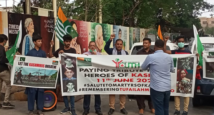 (روز نامہ قدس ۔آنلائن خبر رساں ادارہ ) یوتھ فورم آف کشمیر کے زیر اہتمام کراچی پریس کلب کے باہر کشمیری عوام سے یکجہتی کے لئے احتجاجی مظاہرہ منعقد کیا گیا جس میں پی ایل ایف کے مرکزی سیکرٹری جنرل سمیت دیگر مقررین نے خطاب کیا۔